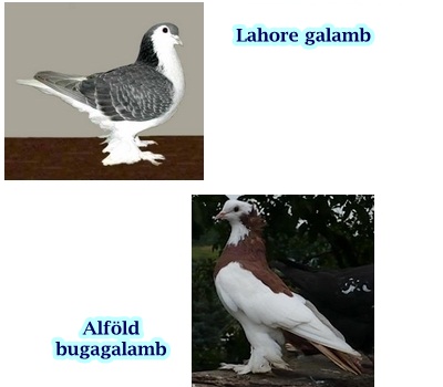 Pld.: Parókás galamb, Páva (Magyar-,Angol-és Indiai) galamb, Fodros (Magyar -simafejű,lábtollas és Francia- körfésűs,simalábú) galamb.